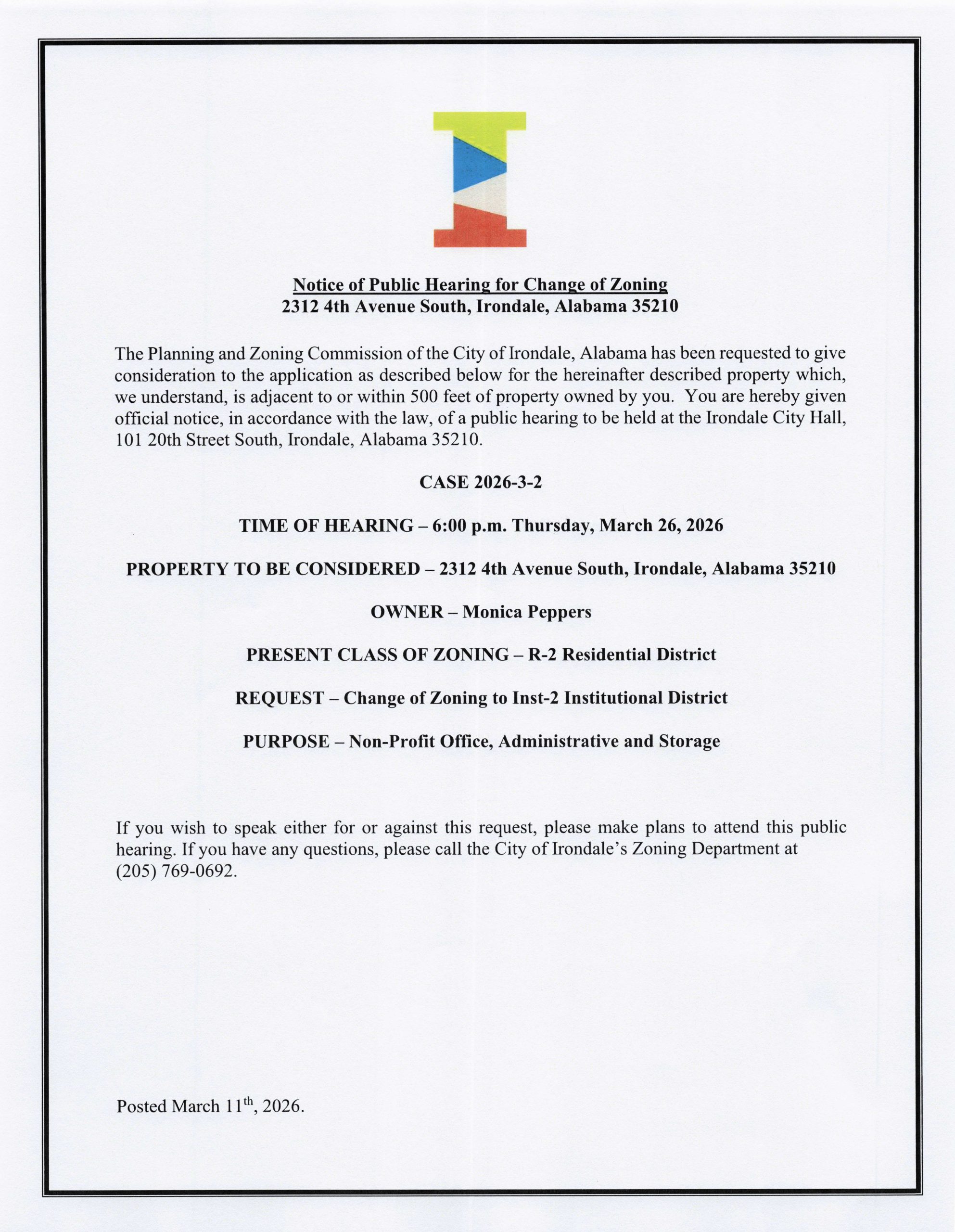 - IRONDALE ZONING BOARD OF ADJUSTMENT AGENDA July 13 2021