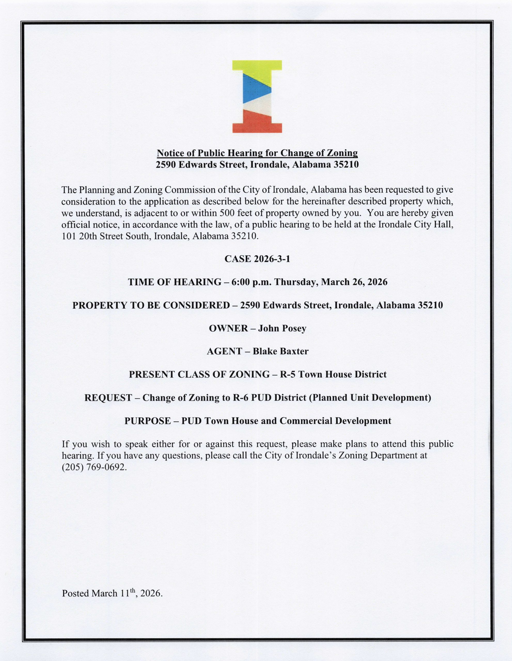 - 4.3.25 – PLANNING AND ZONING Special Meeting Notice