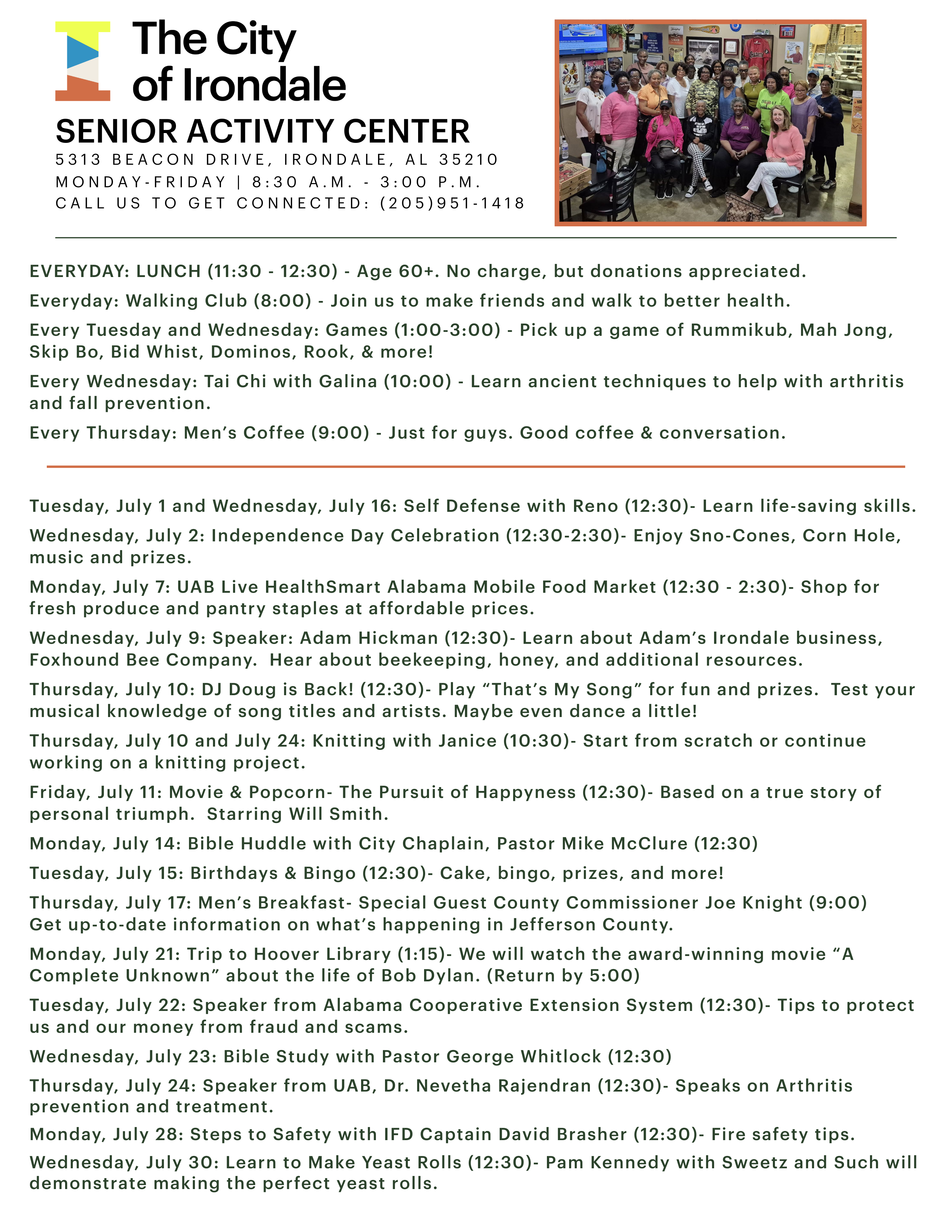 Irondale Senior Activity Center Newsletter and Calendar – July 2025